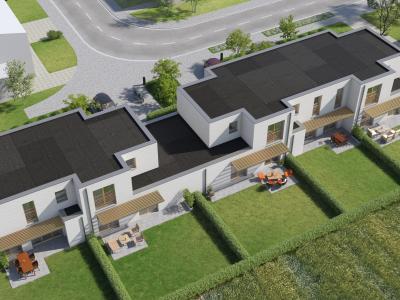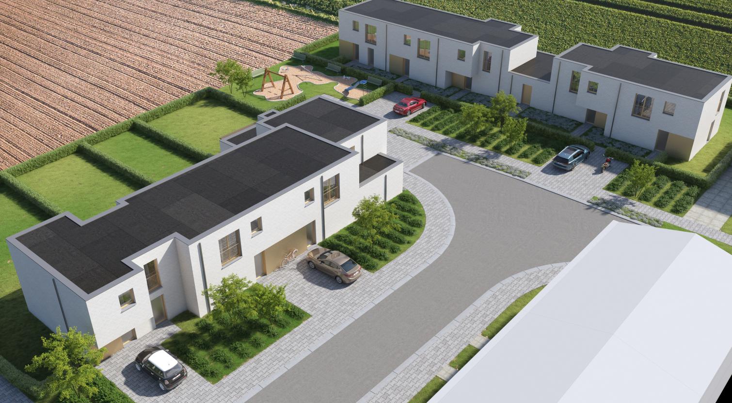 - Afbraak garages en bouw van 5 woningen met tuin