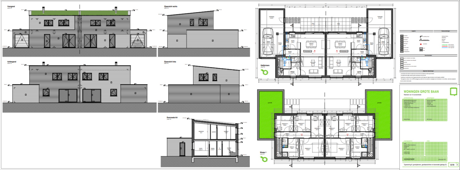 - Elke woning beschikt over een woonkamer, eetkamer, keuken, badkamer, gastentoilet, berging en een garage of carport.