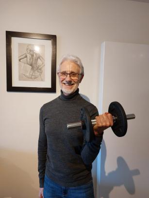 Ik sport 5 keer per week en doe vooral aan krachttraining. Wist je dat je na uw 25ste 1% per jaar aan spieren verliest? Vanaf uw 60ste kan dat naar 3% gaan. Daarom is het belangrijk om vanaf 35 à 40 jaar te werken aan uw spiermassa.